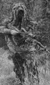During World War One the first true snipers were used in wartime, as opposed to the sharpshooters in the civil war, who were men with long muskets and fought out of formation. The term sniper was coined in the British occupied India, when hunters in search of an illusive bird called the snipe, would lie low and wait for it were referred to as snipers. The Germans were the first to use snipers in World War One, and became very skillfully at it. The Allies then turned the tables on the Germans by setting up the first sniper schools and becoming as good if not better than the Germans. The sniper also evolved in the war with the use of ghillie suits, which are camouflage coats with ground covering on the back, and other forms of hiding. The sniper was used a lot in this war, but it wasn't until later during World War Two that they were used extensively.